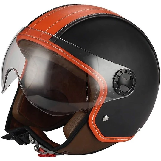 Moto Jet Helm BHR 801 D Leder Bicolor Schwarz Orange