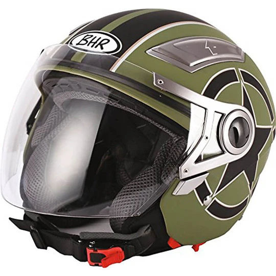 Motorrad Helm Jet Doppel Visor BHR 709 Double Star Grün