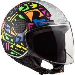 Motorrad Helm Jet LS2 OF558 SPHERE LUX Blüte Schwarz Pink + Dark Visor