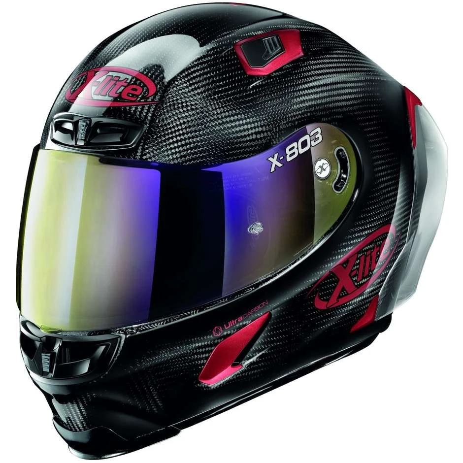 Es ist der X-lite Integral-Rennhelm mit hohem Carbonanteil, bereichert durch ein exklusives Strecken-Setup (RS – Racetrack Setup). Dieses besteht aus: zusätzlichem dunkelgrünem Visier in der Box, aerodynamischem Anhängsel (RAS – Racetrack Aerodynamic Spoiler) und exklusivem Steuersatz-Positionsverstellsystem (LPC – Liner Positioning Control). Darüber hinaus werden die bereits geschätzten und gefestigten technischen Eigenschaften des X-803 ULTRA CARBON bestätigt: extrem geringes Gewicht und Volumen (dank der carbonreichen Konstruktion und der Verfügbarkeit von drei Außenschalengrößen), System zum Entfernen der Wangenpolster im Notfall (NERS – Nolan Emergency Release System), zuverlässiger Visiermechanismus mit Double Action Device, effektives RAF (Racing Air Flow) Belüftungssystem und interne Komfortpolsterung Carbon Fitting Racing Experience (mit innovativer Mesh-Konstruktion).Der X-803 RS ULTRA CARBON wird als der exklusivste Integralhelm für den Motorradfahrer vorgeschlagen, der das Beste aus dem Erlebnis auf der Strecke machen möchte.
