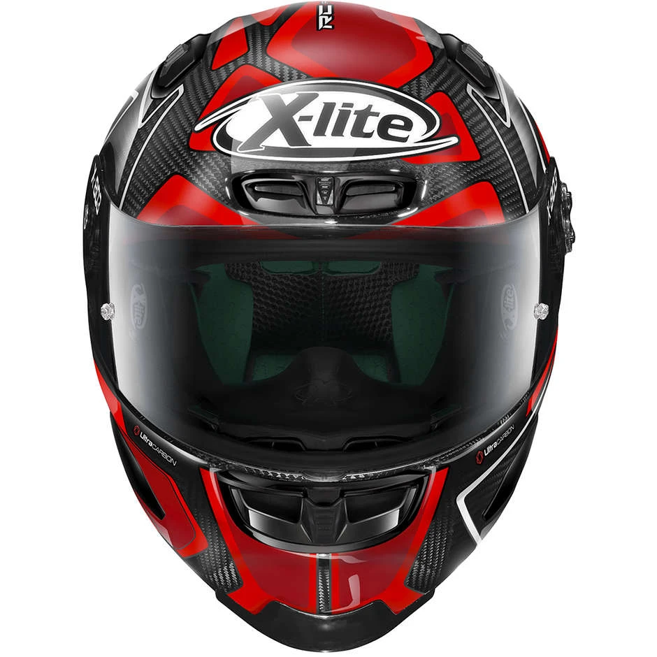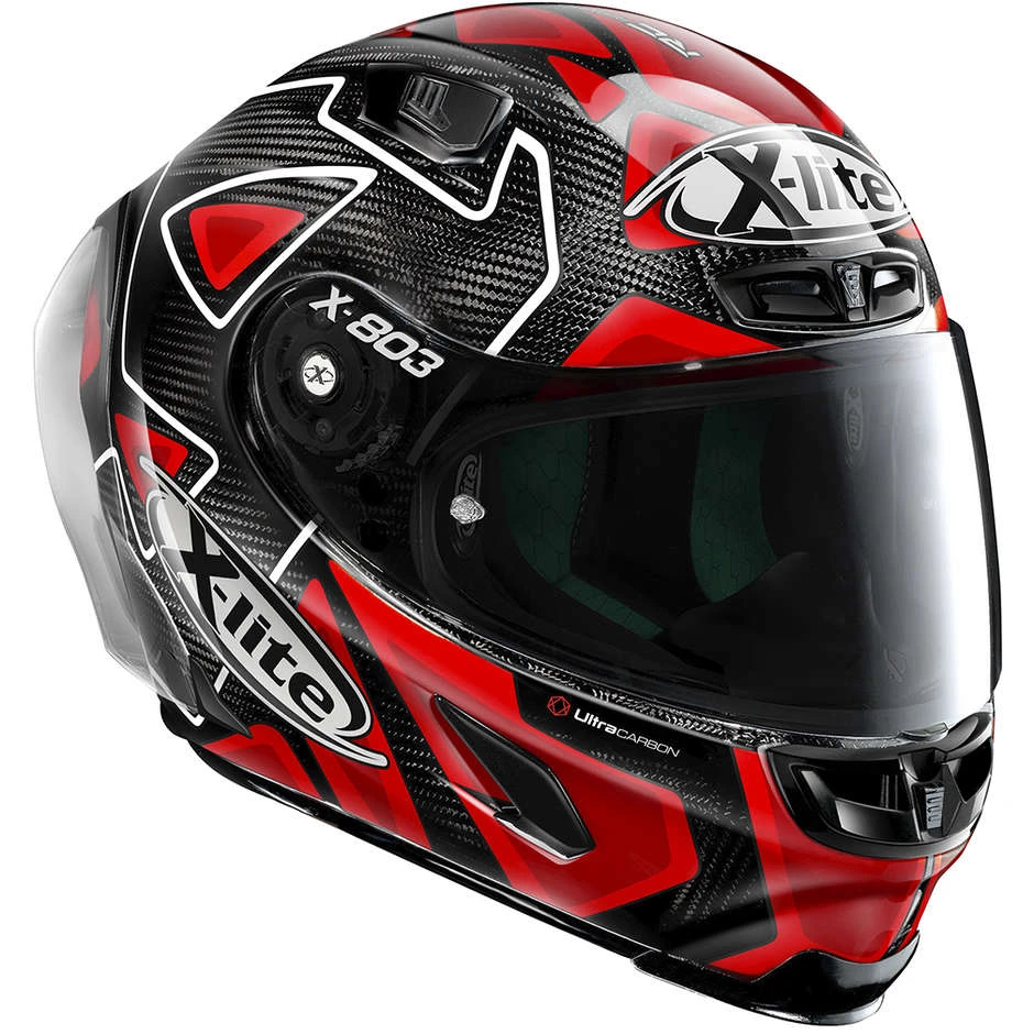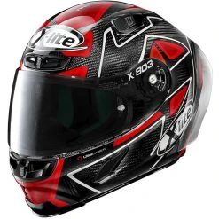 Dies ist der X-lite-Integral-Rennhelm mit hohem Kohlenstoffgehalt, der durch ein exklusives Strecken-Setup (RS – Racetrack Setup) angereichert wird. Dies besteht aus: zusätzlichem dunkelgrünen Visier in der Box, aerodynamischem Anhang (RAS – Racetrack Aerodynamic Spoiler) und exklusivem Headset-Positionsanpassungssystem (LPC – Liner Positioning Control). Darüber hinaus werden die bereits geschätzten und konsolidierten technischen Eigenschaften des X-803 ULTRA CARBON bestätigt: extrem geringes Gewicht und Volumen (dank der kohlenstoffreichen Konstruktion und der Verfügbarkeit von drei Außenschalengrößen), System zum Entfernen der Wangenpolster Notfall (NERS – Nolan Emergency Release System), zuverlässiger Visiermechanismus mit Double Action-Gerät, effektives RAF-Belüftungssystem (Racing Air Flow) und Carbon Fitting Racing Experience interne Komfortpolsterung (mit innovativer Netzkonstruktion).Der X-803 RS ULTRA CARBON wird als exklusivster Integral-Rennhelm für Motorradfahrer vorgeschlagen, die die beste Erfahrung auf der Strecke genießen möchten.