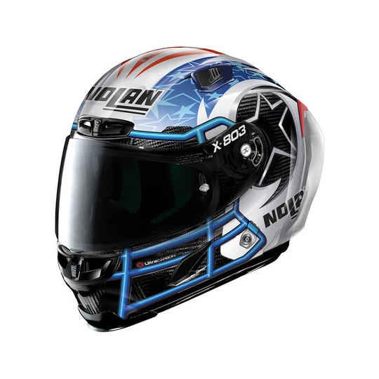 Es ist der X-lite Integral-Rennhelm mit hohem Carbonanteil, bereichert durch ein exklusives Strecken-Setup (RS – Racetrack Setup). Dieses besteht aus: zusätzlichem dunkelgrünem Visier in der Box, aerodynamischem Anhängsel (RAS – Racetrack Aerodynamic Spoiler) und exklusivem Steuersatz-Positionsverstellsystem (LPC – Liner Positioning Control). Darüber hinaus werden die bereits geschätzten und gefestigten technischen Eigenschaften des X-803 ULTRA CARBON bestätigt: extrem geringes Gewicht und Volumen (dank der carbonreichen Konstruktion und der Verfügbarkeit von drei Außenschalengrößen), System zum Entfernen der Wangenpolster im Notfall (NERS – Nolan Emergency Release System), zuverlässiger Visiermechanismus mit Double Action Device, effektives RAF (Racing Air Flow) Belüftungssystem und interne Komfortpolsterung Carbon Fitting Racing Experience (mit innovativer Mesh-Konstruktion).Der X-803 RS ULTRA CARBON wird als exklusivster Integralhelm für den Motorradfahrer vorgeschlagen, der das Beste aus dem Erlebnis auf der Strecke machen möchte.