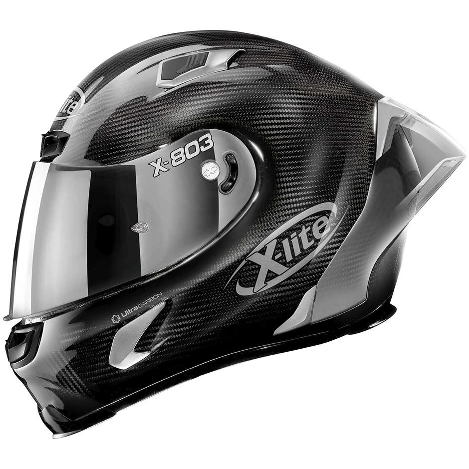 Dies ist der X-lite-Integral-Rennhelm mit hohem Kohlenstoffgehalt, der durch ein exklusives Strecken-Setup (RS – Racetrack Setup) angereichert wird. Dies besteht aus: zusätzlichem dunkelgrünen Visier in der Box, aerodynamischem Anhang (RAS – Racetrack Aerodynamic Spoiler) und exklusivem Headset-Positionsanpassungssystem (LPC – Liner Positioning Control). Darüber hinaus werden die bereits geschätzten und konsolidierten technischen Eigenschaften des X-803 ULTRA CARBON bestätigt: extrem geringes Gewicht und Volumen (dank der kohlenstoffreichen Konstruktion und der Verfügbarkeit von drei Außenschalengrößen), System zum Entfernen der Wangenpolster Notfall (NERS – Nolan Emergency Release System), zuverlässiger Visiermechanismus mit Double Action-Gerät, effektives RAF-Belüftungssystem (Racing Air Flow) und Carbon Fitting Racing Experience interne Komfortpolsterung (mit innovativer Netzkonstruktion).Der X-803 RS ULTRA CARBON wird als exklusivster Integral-Rennhelm für Motorradfahrer vorgeschlagen, die die beste Erfahrung auf der Strecke genießen möchten.