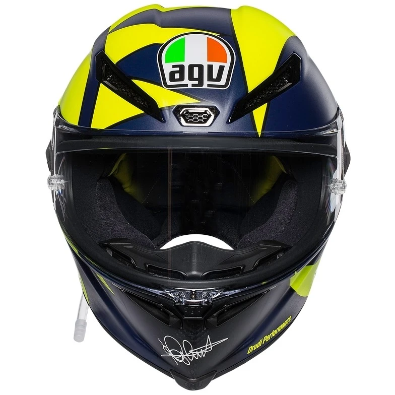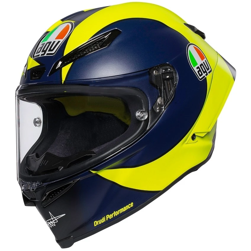 Die Pista GP RR ist eine exakte Nachbildung des FTF-Helms, der von Profifahrern der Weltmeisterschaft bei Rennen eingesetzt wird. Er hat daher die FIM-Zulassung erhalten, die das höchstmögliche Schutzniveau auch gegen gefährliche Kopfverdrehungen bescheinigt.